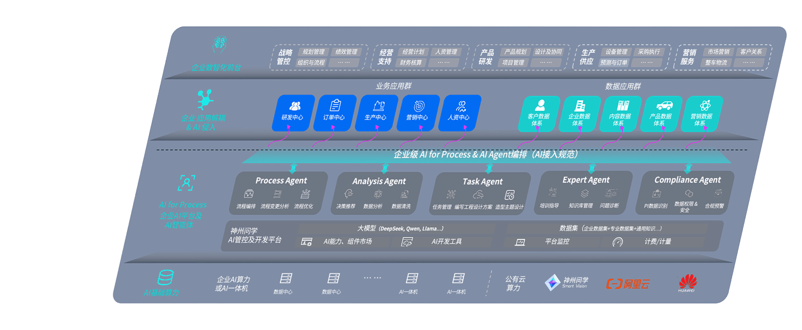 问鼎问学智车解决方案是一套基于AI技术的汽车行业智能化系统,,,覆盖从底层算力到顶层AI应用的全栈方案。。方案由算力层、、、、模型层和应用层组成:算力层,,,方案支持多种一体机配置,,具备云端灵活部署、、、多云适配以及动态优化计算资源的能力;模型层,,,,问鼎问学平台版提供了企业级AI应用一站式构建与管理平台,,,支持基于后训练强化技术的汽车企业专属模型的训练、、、、评测和运营;应用层,,,,问鼎问学DeepSeek版提供包括超级员工、、智能招采、、智能营销、、、、智能客服、、AI for BI等一系列解决方案,,,可助力汽车行业实现数字化转型,,,,让管理更智能、、、、响应更敏捷。。。
