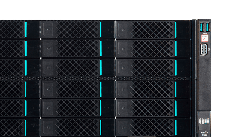 KunTai R524 存储型服务器是问鼎数码基于鲲鹏处理器推出的新一代 ARM数据中心服务器。主要面向存储业务,具有海量存储、高性能、低功耗以及易扩展的特点,适合为大数据分析、软件定义存 储等应用场景的工作负载进行髙效加速。
